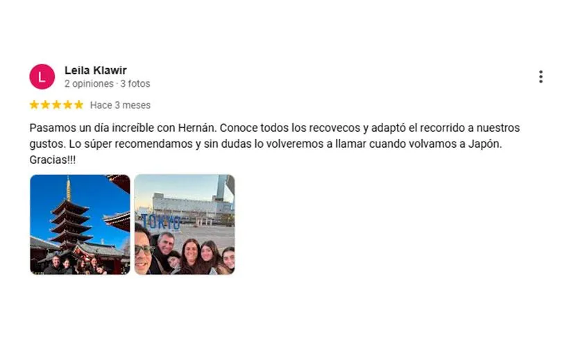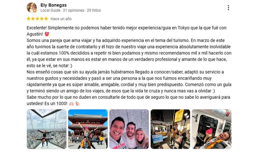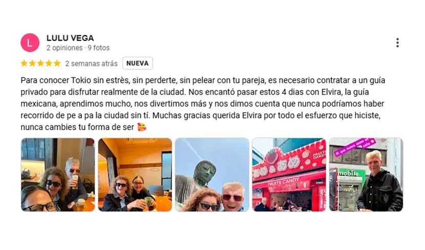 Consejo: Para el pack de Tokio nos puedes enviar previamente lugares que hayas visto en redes sociales y quieras visitar sin falta. Ya sean restaurantes, cafeterías, tiendas, locaciones famosas, etc. Intentaremos adaptarlos dentro de los recorridos de manera estratégica y ayudarte con la compra de tickets o entradas si hace falta.